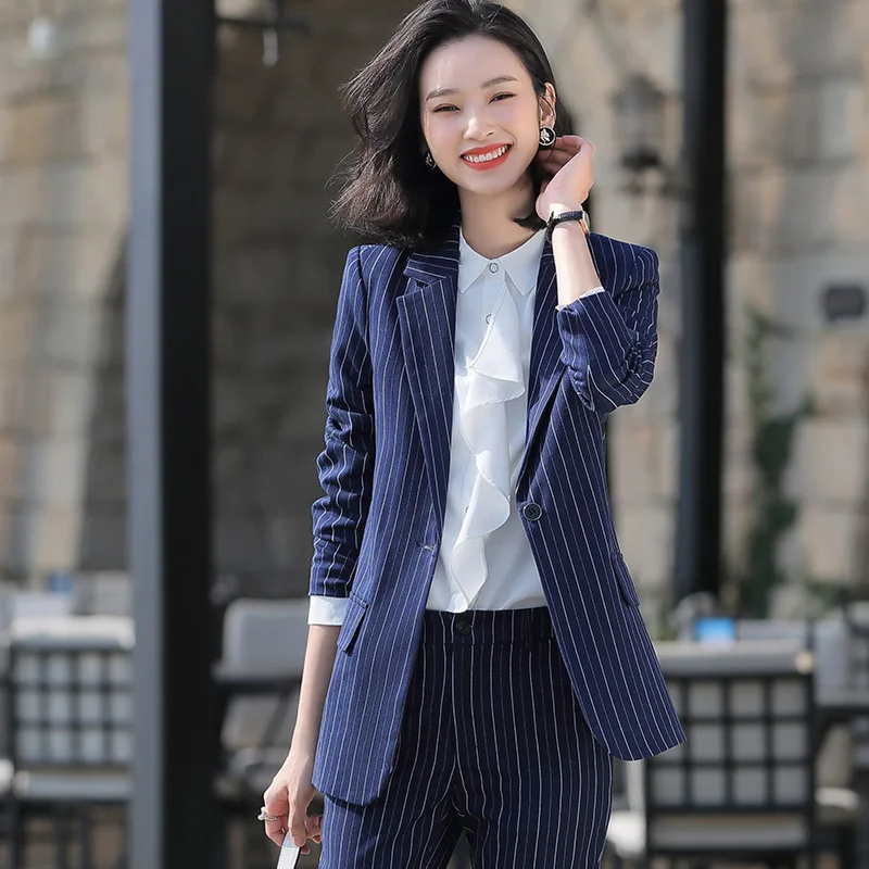 Promo 2020 Fashion Female Elegant Business Pant Suits Office Uniform Formal OL Long Pant Blazer And Pants 2 Piece Set Jacket Trousers