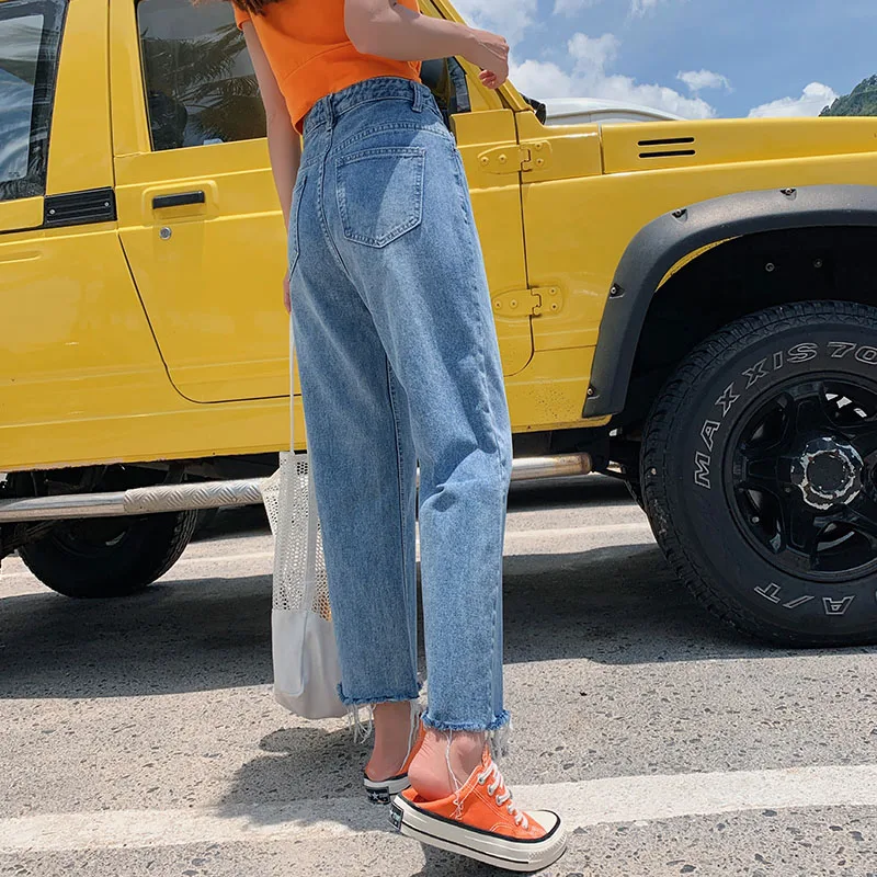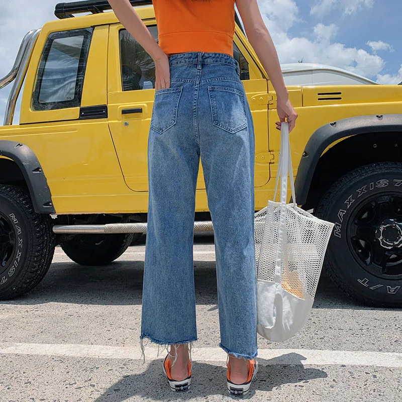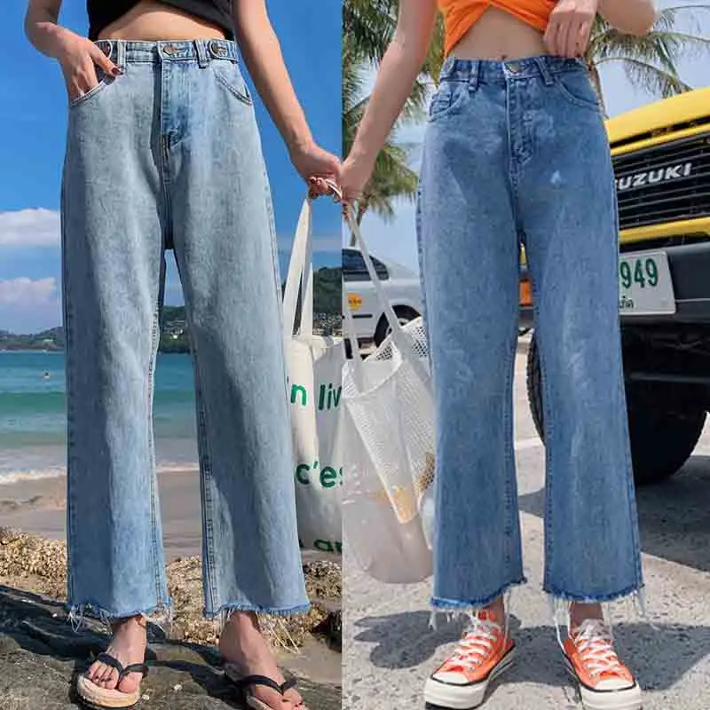 Buy 2020 Newest Womens Fashion Washed jeans High Waist Denim Wide Leg Leggings elastic force Distressed Straight Leisure outdoor